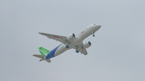 2017年5月5日,C919大型客机首架机在上海浦东国际机场成功首飞。中共中央、国务院为C919大型客机成功首飞发来贺电。