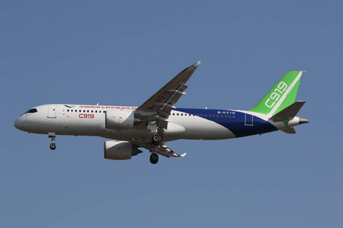 11时07分,试飞员徐远征、张健伟驾驶着C919飞机103架机,搭载着观察员蔡俊,试飞工程师赖培军、王涛在浦东国际机场的第四跑道上,滑跑、抬头、冲上云霄。在1小时38分钟的飞行中,C919飞机103架机完成了21个试验点。