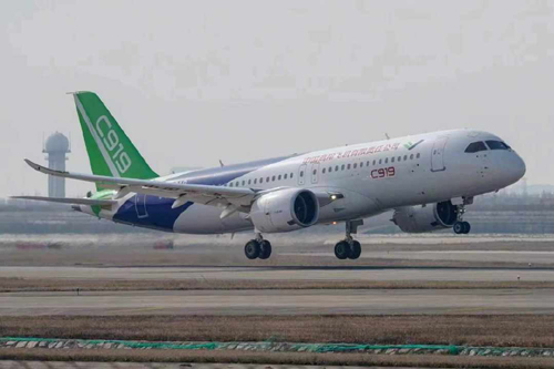 2018年12月28日12时45分,C919大型客机103架机平安降落上海浦东国际机场,圆满完成第一次飞行,标志着目前共三架C919飞机进入试飞状态。