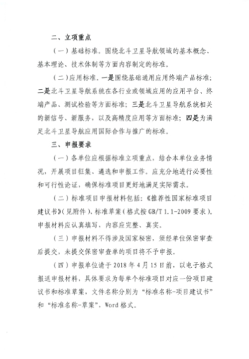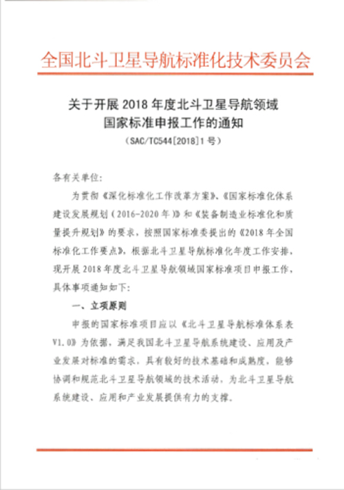 关于开展2018年度北斗卫星导航领域国家标准申报工作的通知