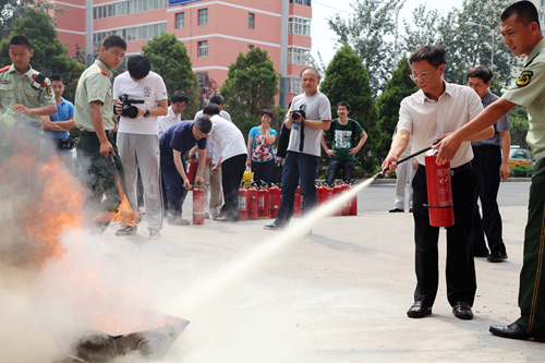 活动首先以授课的形式开展了消防安全教育,消防中队领导以新闻报道、事故分析、现身说法的方式,讲解了近年来发生的多起火灾事故实例,触目惊心的画面和血淋淋的数字使大家的心灵受到了极大的震撼,深刻认识到了“隐患险于明火、防范胜于救灾”的重要性。同时,结合生活工作中用电、用气、用火、用车,对火灾事故发生的原理以及造成的危害进行了介绍,对发生火灾后的自救逃生方法进行了讲解,并按种类、功能、用途介绍了不同灭火器的使用方式,使大家对火灾类型、火灾报警、火场逃生以及消防设备使用等方面有了较全面的认识和了解,并模拟了火灾现场,在办公楼内施放浓烟,组织大家按照逃生要领有序快速疏散。讲解完成后,又对灭火器材的正确使用方法进行了培训与示范,使大家进一步熟悉正确使用灭火器材的操作规程,并组织大家实际操作灭火器灭火,掌握了灭火器的操作要领。最后,大家还近距离参观并体验了液压剪切器、扩张钳、消防云梯等特种消防装备。