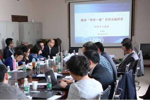 在评估中心党支部部署党小组已经组织开展学习和个人自学的基础上,会议首先回顾学习习近平总书记关于“两学一做”学习教育的重要指示和刘云山常委的落实要求,传达学习中央“两学一做”学习教育方案、部党组“两学一做”学习教育的通知和实施方案等全文,传达学习了王志刚书记在动员部署会的讲话、李萌副部长在工作组和各单位联络员会议上讲话等精神。