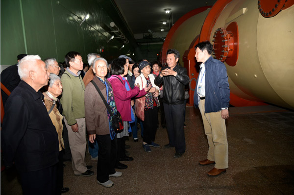 看到我国科研人员自主研制的40多米长的大块头科学实验装置,国家在重大科研装置建设方面的成果,老同志们很是兴奋,也很自豪。在听取讲解的过程中,大家不断思考提出问题,黎懋明同志询问我们研制的装置和国外同类装置的比较?申茂向同志关心的问题是科技体制改革对原子能院基础研究是否有影响?郑立中同志想了解高新技术推广应用,杭三八同志询问了核装置的安全运行,徐韶辉同志提出离子加速现象等物理问题……,大家兴致很高、气氛热烈。在返回科技部的路上,不少同志还在互相交流感受和体会,每个人都感觉收获很大。