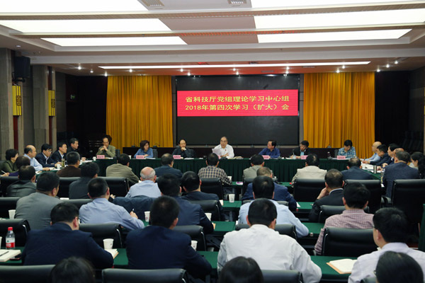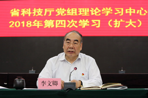 4月2日下午,省科技厅召开党组理论学习中心组2018年第四次学习(扩大)会。厅党组书记、厅长、厅直属机关党委书记李文卿同志主持会议并讲话。会议传达了中共中央政治局会议、中央全面深化改革委员会第一次会议、习近平在十九届中央政治局第四次集体学习时的讲话精神,传达学习了全省依法行政工作领导小组(扩大)会议、全省脱贫攻坚领导小组会议和3月22日全省领导干部大会、省委常委会精神。厅党组理论学习中心组成员、厅机关全体干部80余人参加了学习会。