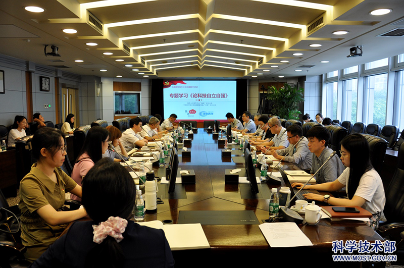 为扎实开展学习贯彻习近平新时代中国特色社会主义思想主题教育,推动主题教育走深走实,号召青年同志把学习成效转化为奋进新征程、建功新时代的强大动力,8月1日上午,国外人才研究中心“锐思”青年小组和中国科学技术发展战略研究院“开思”青年小组联合组织开展主题教育联学活动,专题学习习近平同志《论科技自立自强》一书。国外人才研究中心党支部书记汤富强、党支部副书记许佳军、领导班子成员熊德义,战略院党委书记刘冬梅、科技创新理论研究所所长李哲、科技治理与人才研究所所长张明喜出席活动,来自两家单位青年小组共计20余名青年同志参加活动。