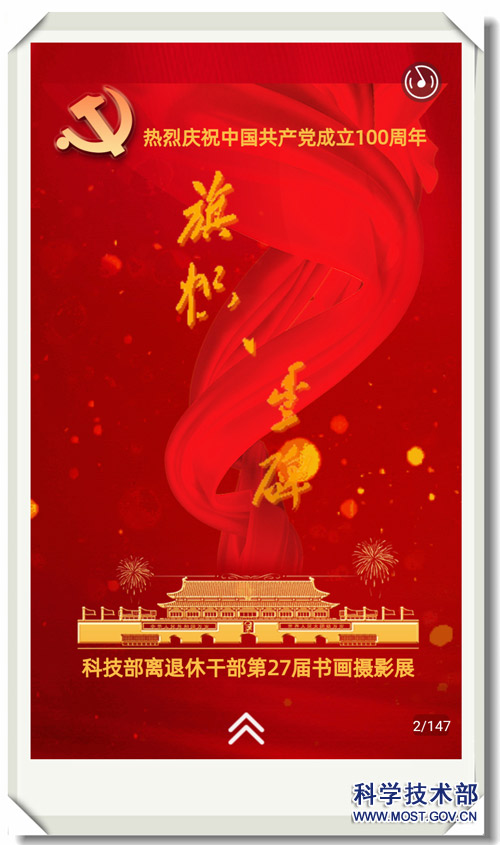 在庆祝中国共产党成立100周年之际,“旗帜?丰碑”科技部离退休干部第27届书画摄影云展览正式上线。作为离退休干部局党委党史学习教育系列活动之一,本次展览共展出书画、摄影作品140余幅。老同志们满怀喜悦与赤诚,藉流光墨影,忆峥嵘岁月,鉴如磐初心,摹和谐盛世,颂千秋伟业,谱伟大精神,弘扬中华优秀传统文化的同时,充分展现党史学习教育成果,向党的百岁华诞献礼。