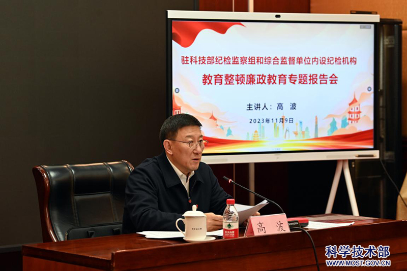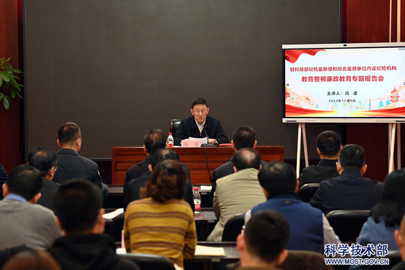 11月9日上午,驻科技部纪检监察组组长高波主持召开会议,深入学习贯彻习近平总书记关于加强纪检监察干部队伍建设重要论述,传达学习全国纪检监察干部队伍教育整顿领导小组第4次(扩大)会议精神和中央纪委国家监委第二监督检查室相关会议要求,运用纪检监察干部违纪违法典型案例开展警示教育。纪检监察组全体干部和5家综合监督单位内设纪检机构干部共70多人参加。